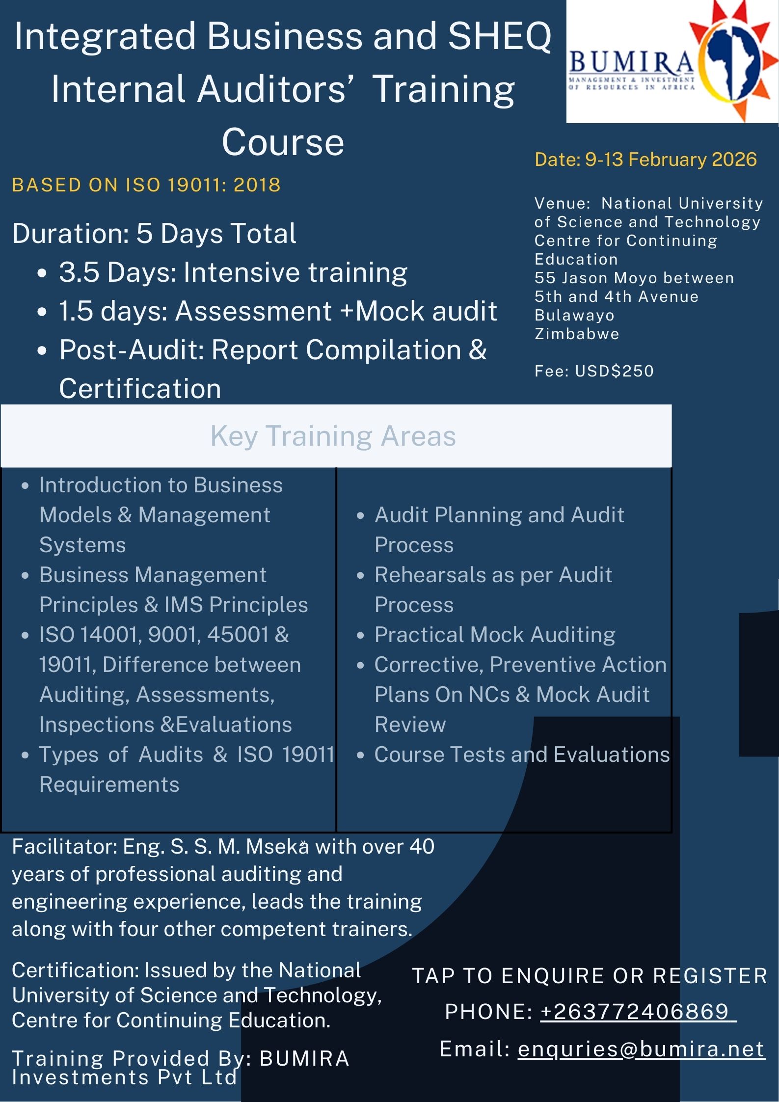 Further accreditation can be afforded in collaboration with the National University of Science and Technology (NUST).